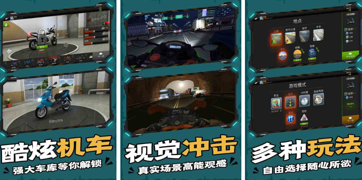 本作采用创新的第一视角驾驶模式,画面建模与音效表现达到主机级水准,带来身临其境的骑行体验。玩法多样且持续更新,支持自由探索与任务挑战双重模式。内置强大的车库系统,允许玩家对爱车进行全面改装与属性提升。无论是单人闯关还是联机对决,都能感受到不断升级的驾驶乐趣。丰富的比赛形式也为玩家提供了结识同好的机会。