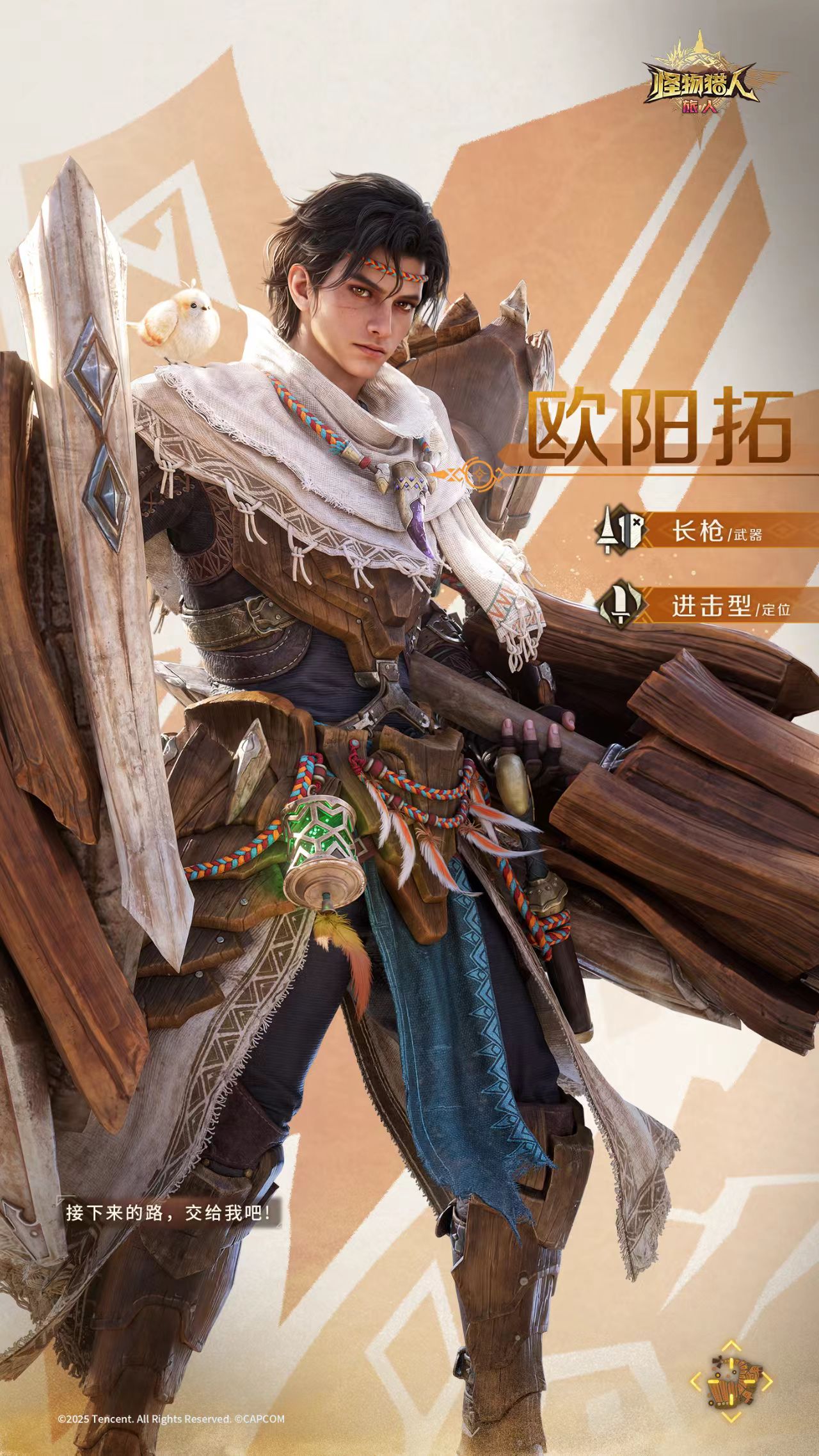 欧阳拓出身于游历全球的探索者群体,武器为长枪,核心定位为“进攻型核心输出”。在组队协作中,他承担关键爆发任务,尤其适用于限时通关、阶段压制及高韧性怪物的破防阶段,能显著缩短战斗时长并提升容错率。