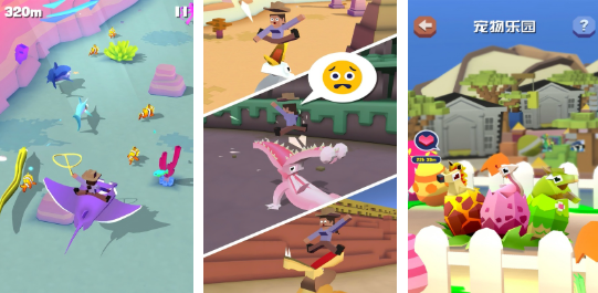 本作创新融合跑酷、动物捕捉与养成玩法,形成完整成长循环。采用鲜明3D像素美术风格,每种动物具备差异化行为逻辑——如斑马易受惊吓、野牛具备冲撞能力。玩家需在高速奔跑中实时切换骑乘对象以维持前进状态,操作简洁但对时机判断要求较高,策略维度明显增强。
