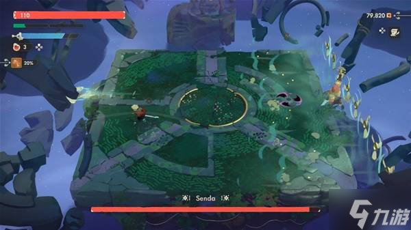 当你耗尽他生命条近50%时,森达会摧毁竞技场中心,移动到那里,并在他周围生成三个环,并在竞技场边界再生成两个环。他附近的三个人会开始滚动,慢慢移动到另外两个。