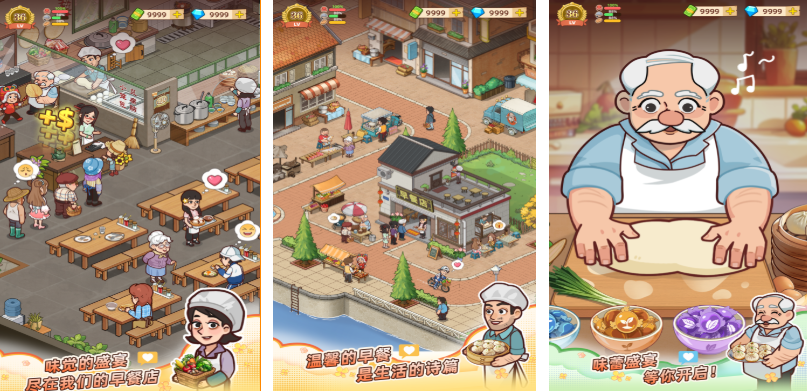 爷爷的早餐店以家庭温情为主题背景,主打传统中式早餐的制作与经营。小笼包、水饺、油条等经典美食均可由玩家亲手烹制。手绘风格的画面呈现独特艺术质感,流畅的操作体验搭配层层递进的任务结构,让整个经营过程既轻松又富有成就感,适合追求慢节奏生活的玩家。