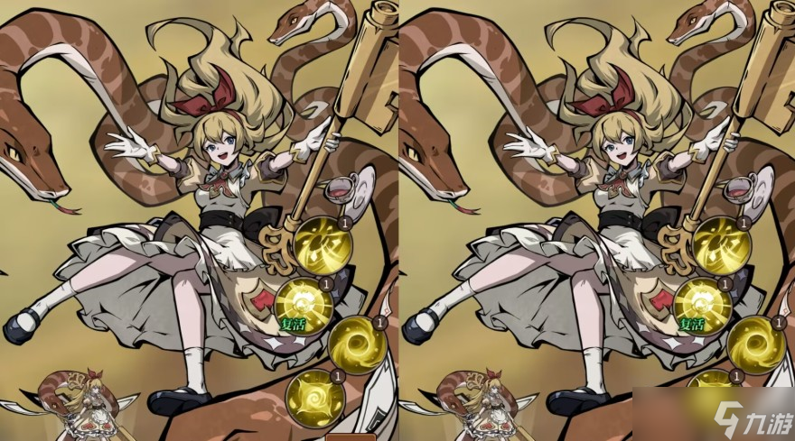进一步保护队友,能够给队友提升伤害和免伤,净化队友的负面和提供复活和治疗配合骑士明妮和爱丽丝更全方面保护队友。
