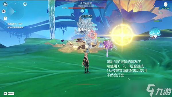 2、重点进攻中间的丘丘人,蕈蕈雷菇王和哐哐铁头菇组合战技。