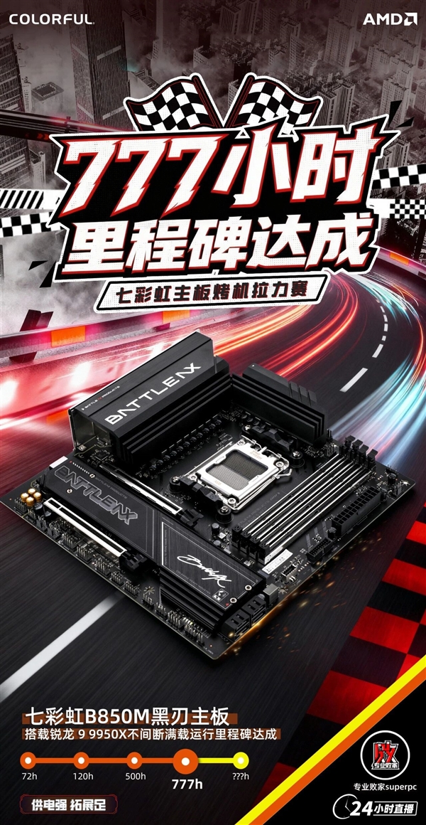 七彩虹百元级B850M主板:满载不间断运行777小时无异常!