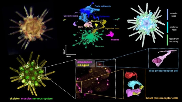 研究者发现,拟球海胆具有 15 种独特的光感受器类型,而且全身都分布着对光敏感的细胞,整体结构甚至可以媲美人类的视网膜。