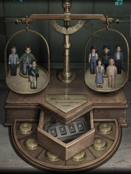 4. 回到监狱,使用警棍可获得门口和窗外的两个人偶,将获得的所有人偶都放在左边的天秤上,根据以下方式放置人偶,获得小键盘。