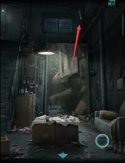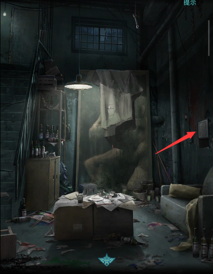 4. 通过密码进入走廊尽头的房间,用螺丝刀打开墙上的画框,使用喷壶装一些显色药水,将其喷在画框上,看到一段文字,将其喷在画布上,可看见长寿无极 2016.4.10的文字和10个三角,1个星星