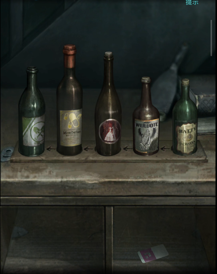 5. 根据墙面上文字的顺序,重新调整左边桌上瓶子的顺序,获得二楼的门禁卡