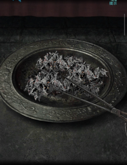 5. 点击炭火,使用铁钳夹走上面的东西,获得拼图,将拼图复原,使用胶带粘好,走到祠堂外点击天空,将拼图对准天空,可看见上面的信息