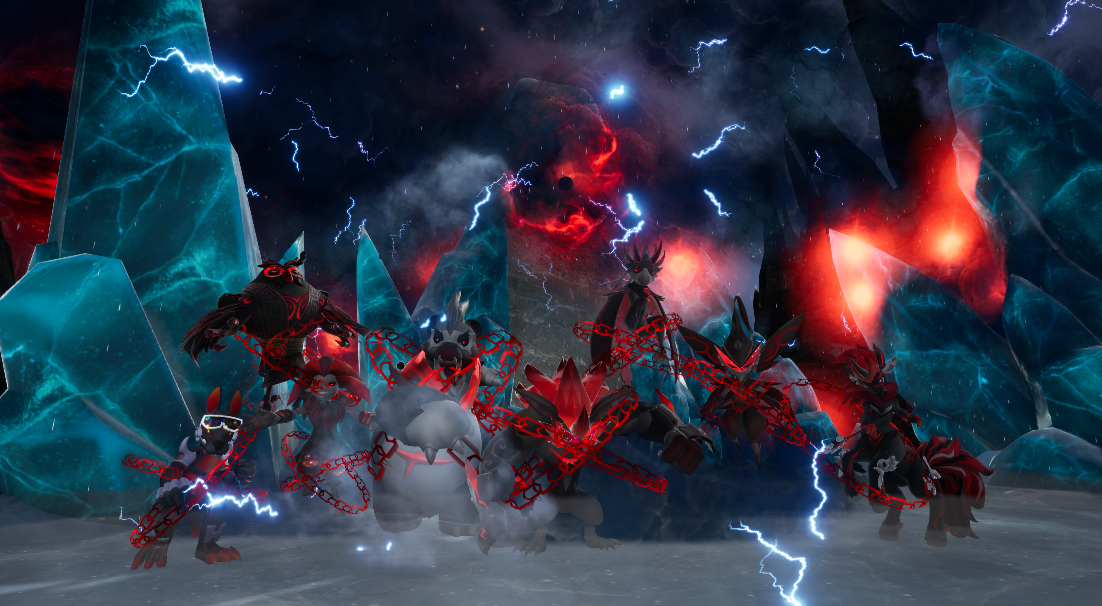 更令人震惊的是,圣殿中出现了八位守护之灵化身的身影。他们本该是圣殿的守护者,如今却浑身缠绕着黑红色的能量波纹。研究发现,这是能量潮汐过载形成的"蚀刻符印"——既是封印,也是试炼。
