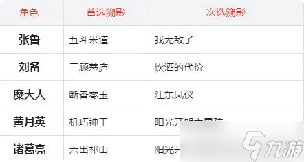 1、张鲁:作为团队前排,自己必杀大概率是会给到自己以保证自身后排安全的,因此专属溯影五斗米道便是比较好的一个选择,还可以自拉条次选的我无敌了也能在受击的时候,获得护盾,提升自身的站场能力,让后方的主C安心输出。