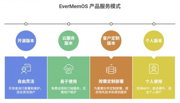 目前,EverMind已在github上开放EverMemOS开源版本,供开发者与 AI 团队部署与试用。Github访问地址为:https://github.com/EverMind-AI/EverMemOS/。预计在今年晚些时候,团队将发布云服务版本,为企业用户提供更完善的技术支持、数据持久化与可扩展体验,有兴趣的开发者或企业可以在官网(evermind.ai)留下邮箱,将有机会第一时间体验服务。