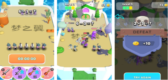 首创“数学运算+实时战斗”双核机制的创新向猎魔手游。玩家需组建三人小队,在高速推进的战斗进程中同步完成加减乘除等基础运算题,答题正确率与响应速度直接影响角色攻击力、暴击率及技能释放频率。系统设有阶梯式难度曲线,随章节推进逐步提升题目复杂度与时间压力,强调脑力与手速协同作战的独特体验。