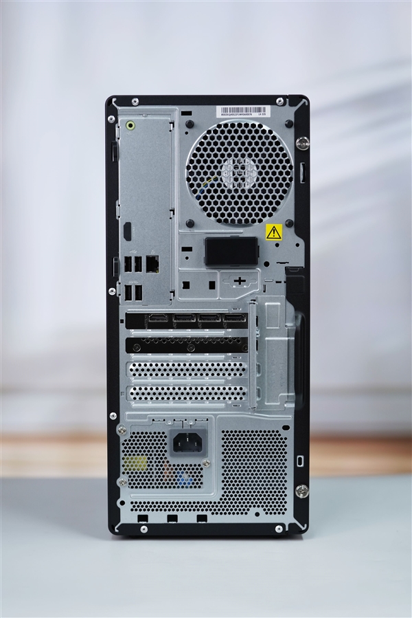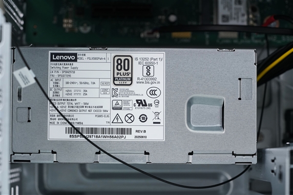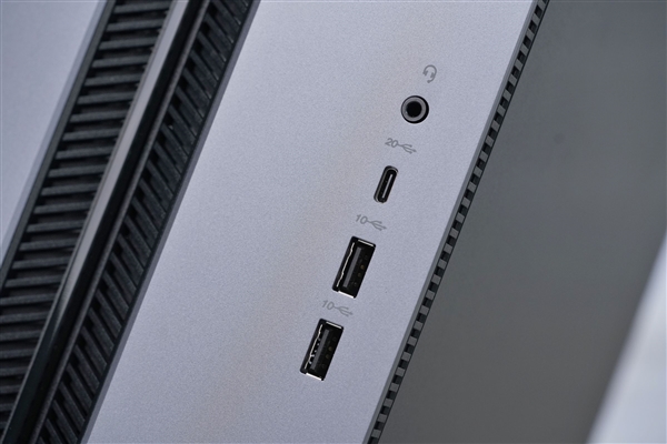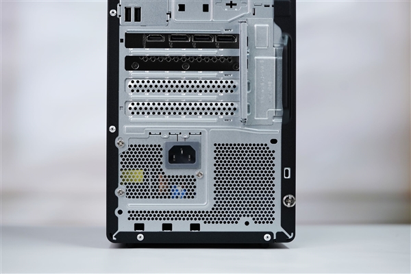 此外,该机采用了500W白金电源,前面板提供了Type-C(USB 3.2 Gen2x2)、Type-A (USB 3.2 Gen 2),背面提供了千兆网口、USB 2.0、HDMI 2.1以及DP 2.1接口。