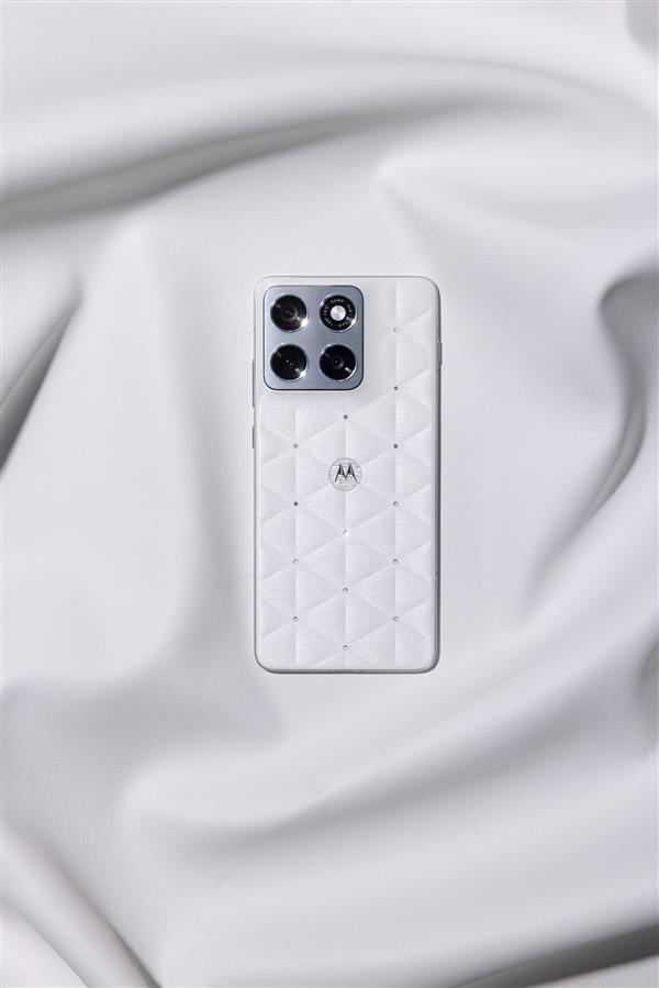 联想moto X70 Air云上舞白冰钻限定版以“云舞”之名,重新想象“轻薄”,是目之所及,属于天空的诗意;更是身之所感,摆脱重量的自由舞姿。机身采用立体三角形格纹工艺,设计灵感源自钻石切割工艺,每个线条交点上,共手工镶嵌14颗施华洛世奇冰钻,每颗冰钻均含9个切面,交错线条如钻石火彩般流动闪耀,纯素皮表面精心雕琢立体丝绸纹理,呈现柔软的高级触感与视觉体验,演绎“云上高定”美学理念。