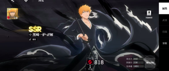 第二位强力推荐的是黑崎一护卍解形态,该角色属于当前版本T0级别战力代表,无论单体爆发还是群体清理均有出色表现。尽管是SSR稀有度,但其养成资源需求相对友好,非常适合新手玩家入手。擅长近战连击,拥有“单体斩杀之王”的美誉,是目前单体输出能力的巅峰存在。随着命座和装备的成长,后期潜力极为可观,是长期投资的理想选择。