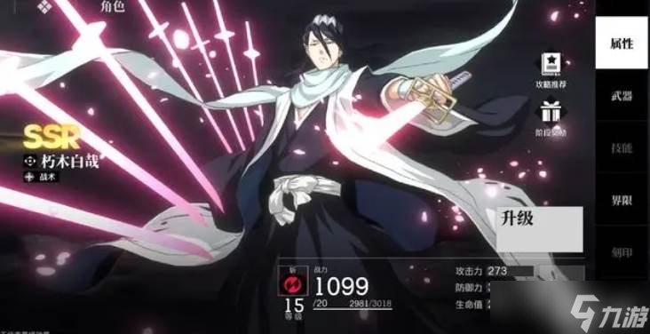 第二个为大家推荐的就是朽木白哉,朽木白哉作为目前品质达到SSR的角色,在输出上面也是非常强的,他的技能上面带来的范围输出就是一个光阵的能力,并且在光阵当中它还可以释放一个激光进行输出,那么这个激光也是带有穿透性能力,在大招上面,他可以带来的是召唤效果,并且一次性就可以召唤多把浮空刀,这个浮空刀利用刀刃进行攻击的时候是有这种效果的,所以就算敌人的行动比较灵活,大家用这个大招也不怕打空,后期使用完大招之后,他的技能还可以转化为防御性的姿态,只要双手使用斩魂刀这个武器的时候,他的攻击最多是可以达到4倍提升效果的,所以绝对算得上是强攻角色的一员。