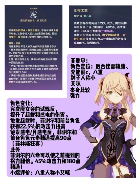 菲谢尔:小艾咪,后台雷系充能副c,人称大八重神子。