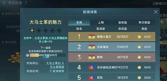 当船长达到30级之后,东非贵金属环线成为追求终极利益的选择,这条路线利润可达250%以上,是真正的财富快车道。具体操作是从欧洲热圈港口装载军火和高级工艺品,运往东非港口,用以交换当地独有的红蓝宝石和麝香。需要注意的是,后期跑商对港口投资要求较高,基础港口建议投入120万银币来解锁全部库存,以确保能一次性采购足量的商品。
