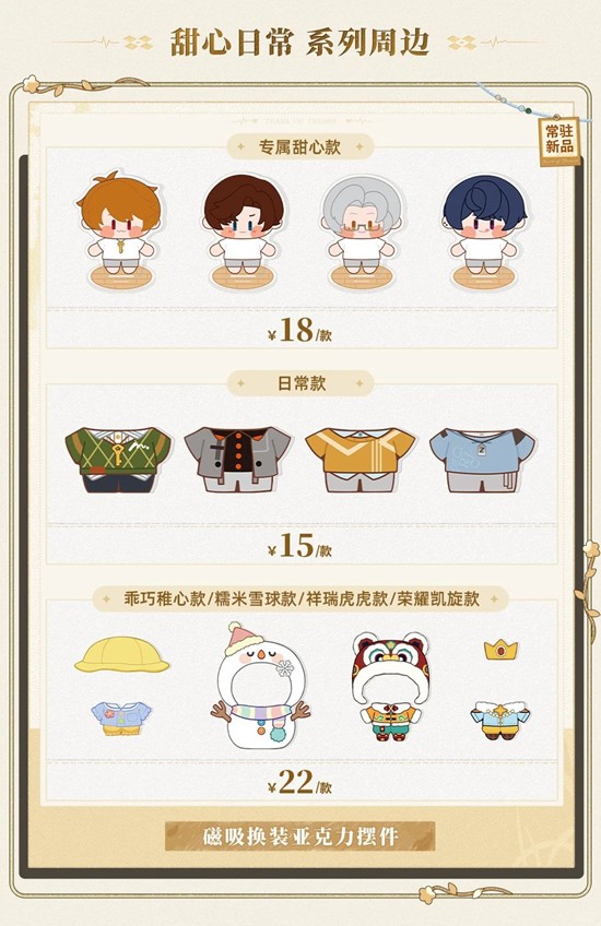 -「甜心日常」系列 磁吸换装亚克力摆件(专属甜心款、甜心服饰-日常款、甜心服饰-乖巧稚心款/糯米雪球款/祥瑞虎虎款/荣耀凯旋款) 随心搭配多样装扮与他共度萌趣时光