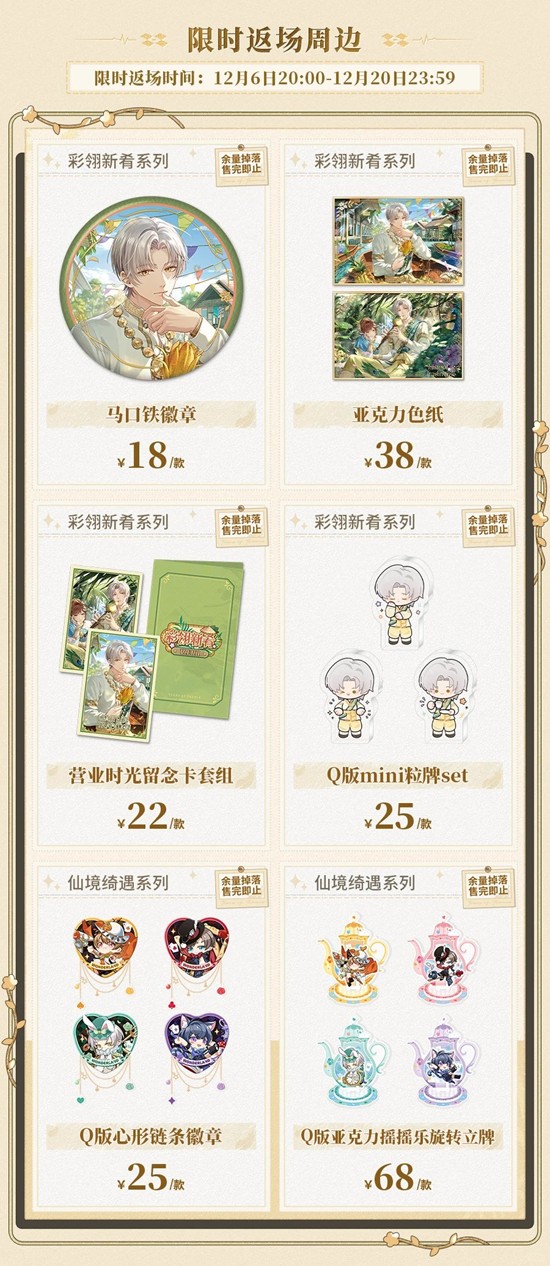 -「彩翎新肴」、「仙境绮遇」系列周边余量掉落
