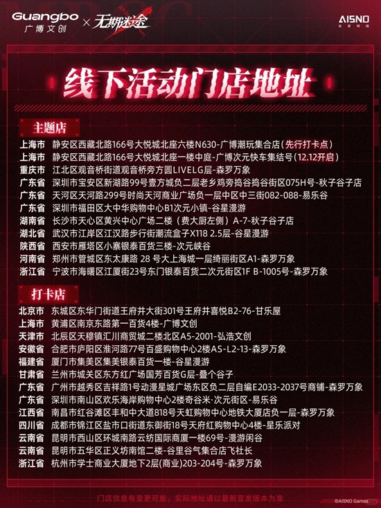 主题店打卡点全面开放,完整信息详见官方宣传图。