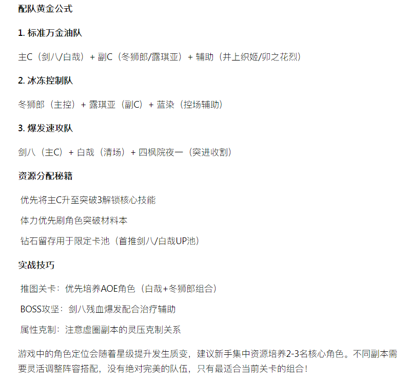 【攻略分享】公测开荒指南:角色强度、选择与配队全解析