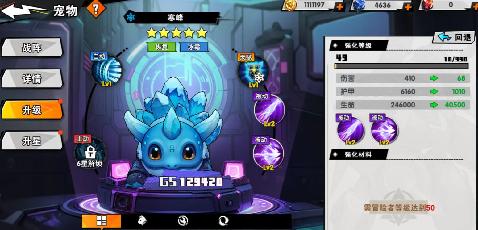 在通过主线7-5之后会解锁宠物系统,宠物可以帮助执行派遣任务,资源主要用于升级主宠物即可,这个主宠尽量去选择对所玩角色有更多加成的,像是妮娅就比较推荐能打出更高伤害的牙牙,布耶尔推荐能源源不断带来护盾恢复的大眼,欧利昂推荐能提升召唤物伤害的熔火等,当然如果抽中了5星级的宠物,也是可以优先培养的,大家不用担心材料上的浪费,在宠物达到50级之前,只要点击回退就可以返还所有的材料,去升级新获取的主力。