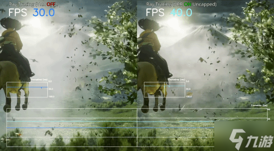 在光追模式下,关闭VRR的帧率为30帧,开启VRR后帧率能达到40帧,基本不会掉帧。