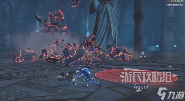 巨型神像剧情后,注意避开红色区域,以躲避巨型神像的攻击。