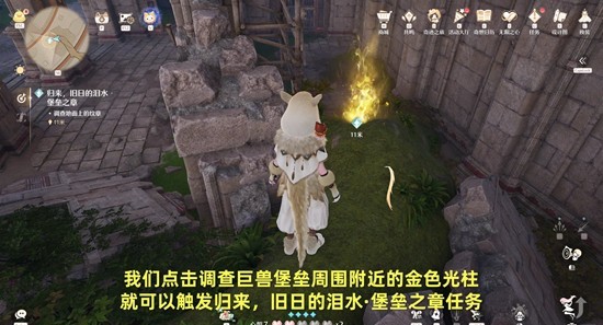 我们在巨兽堡垒附近,点击调查任意一个金色光柱,就可以触发此任务;