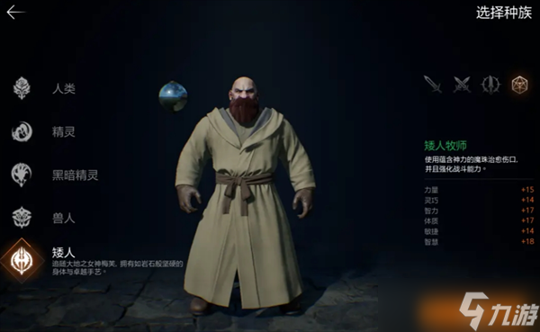 游戏中一共有五大种族,人类、精灵、黑暗精灵、兽人以及矮人,每个种族可选择的职业会有所区别~以下为现阶段各种族可以选择的职业: