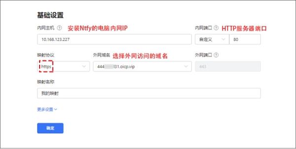 确认信息无误后点击保存,系统会自动生成一个外网访问地址。至此,一条连接互联网与您本地ntfy服务的隧道已经建立完成。