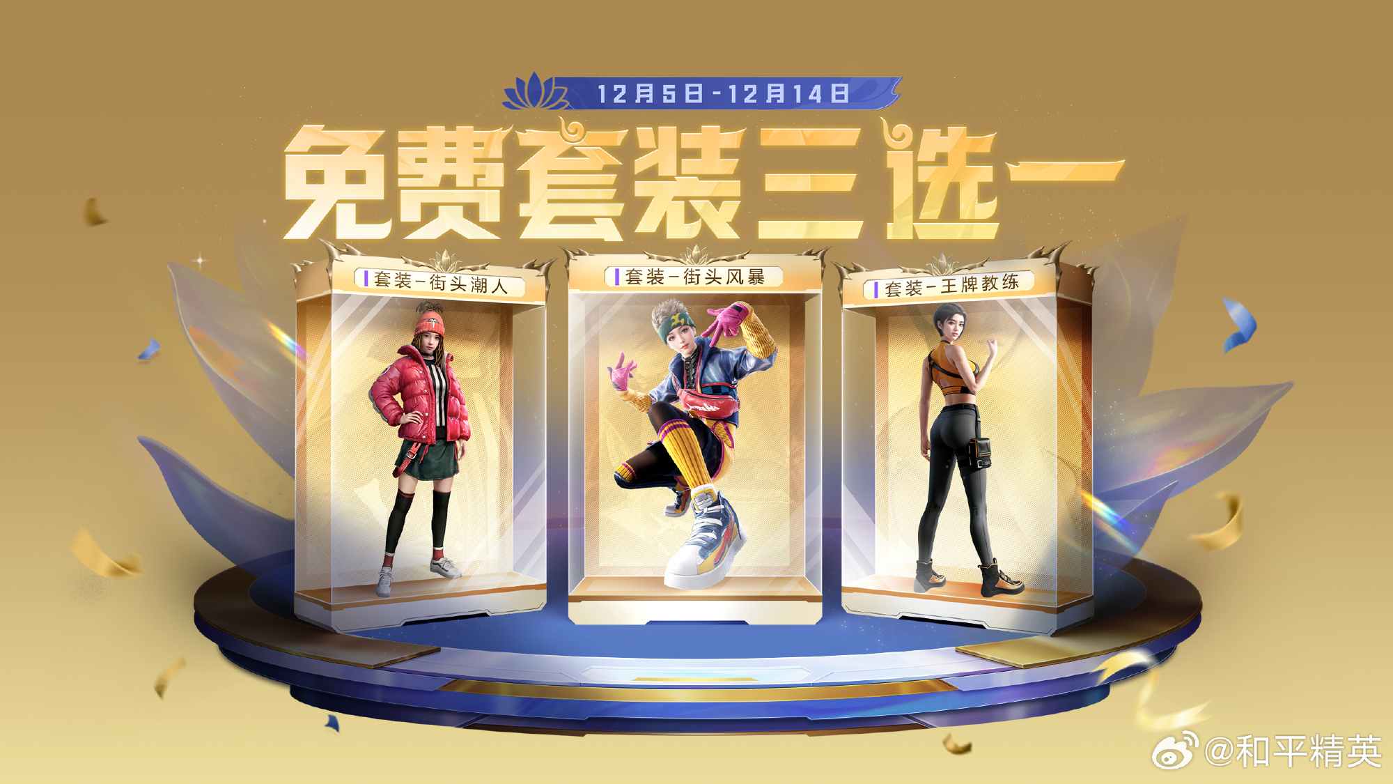 12月5日-12月14日,完成任务可获得开包机会,开包后可获得PEL赛区选手卡牌,集齐一定数量的PEL赛区选手卡牌,可以在套装-街头风暴、套装-王牌教练、套装-街头潮人中任选一件获得,若三件都已拥有,则可选择100服饰币!