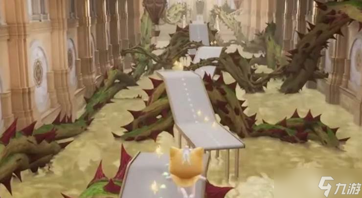 后半段路程是通关的难点所在。当顺着卸妆水流来到荆棘丛生的路段时,玩家需要操控大喵小心避开这些荆棘,同时注意不要掉落到水中。触碰荆棘会扣除暖暖一格生命值,而落水则会直接导致任务失败并返回路段起点。通过这段危险区域的最佳方法是熟练运用二段跳技巧,让大喵在第一次跳跃达到最高点时再进行第二次跳跃,这样可以越过大部分荆棘障碍。对于少数无法直接越过的荆棘,可以采用几何跳的方法,先向旁边跳出传送带范围,越过荆棘后再通过二段跳调整角度回到传送带上。