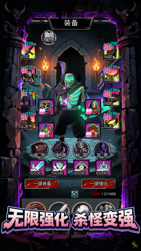 没有固定的关卡来阻止玩家们的体验,角色扮演类型的冒险游戏的体验感受,放置挂机的轻松战斗过程,正是适合我们玩家选择的目标,《一个人的战意》这款手游里面的双模块资源的获取会更加的简单,积累下来的金币全部都可以拿去进行使用,还有着多种随机性的装备可以被你们获取的哦。