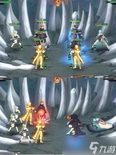 敌方阵容:佩恩[六道集结]+鸣人[九喇嘛连结]+圈圈脸[忍界大战]+碧蓝之牙
