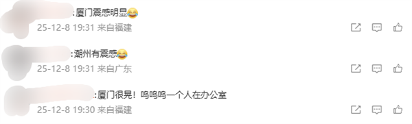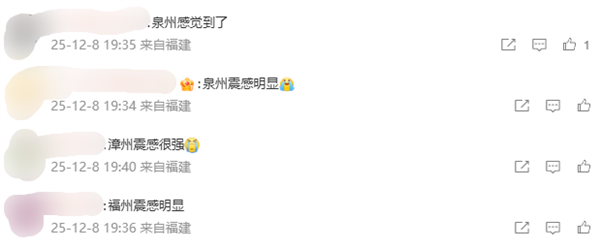 根据网友反馈,泉州、福州、厦门等地震感明显。