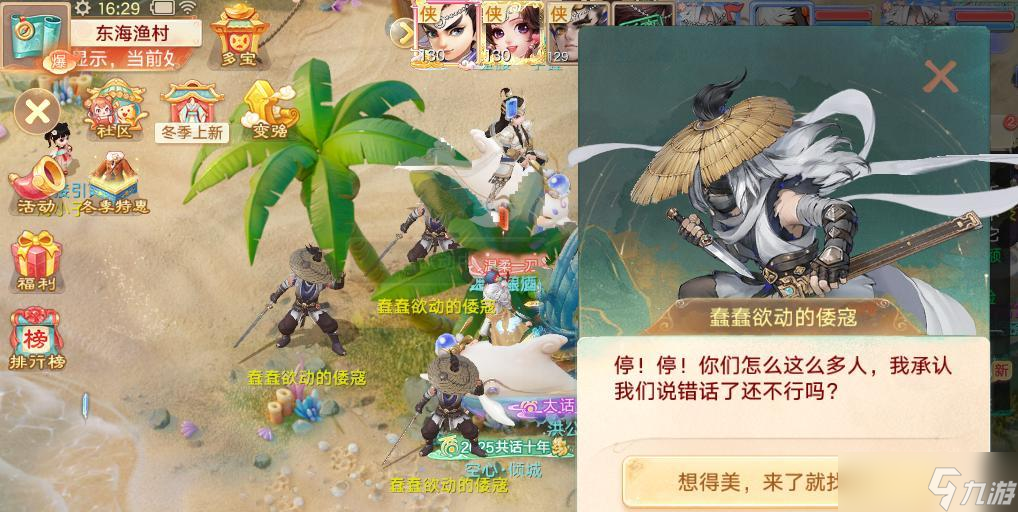 时间:2025-12-09 | 作者: | 阅读:0要说打小日本鬼子,那我可有兴趣了!大话西游手游除倭灭寇上线,东海小岛出现了以“低市晚苗”为首的倭寇,哈哈哈这NPC名字起得真有内涵,清退他们还有机会获得座驾白海豚、神兽浪淘沙等奖励,这种好事怎么可以错过?!