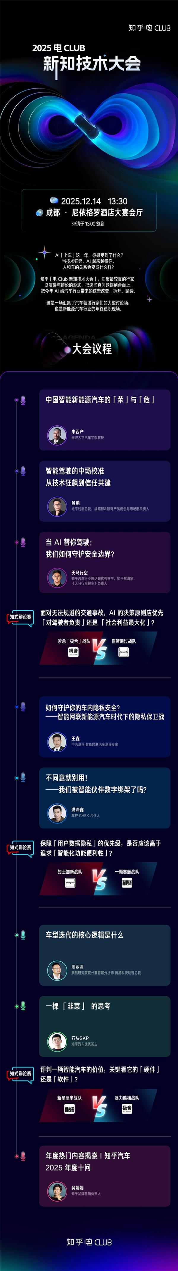新能源汽车发展充斥着最尖端、前沿的技术创新,而当下新能源汽车行业中最专业、最深度、最值得信赖的讨论和内容,正在非常高频地发生在知乎。作为创新产业和新崛起消费市场,新能源汽车更仰赖专业内容的普及。这也是知乎举办电Club新知技术大会的初衷,通过可信赖的专业讨论和分享,为市场创新和消费提供价值。12月14—15日,知乎2025电Club新知技术大会,敬请期待。