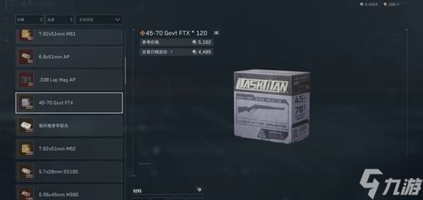 之后接任务 4,先去工作台领取之前备好的 120 发 7.62x39mm AP 子弹,随即在工作台启动 120 发 45 - 70 Govt FTX 子弹的制造,这个制造过程需要 8 小时。