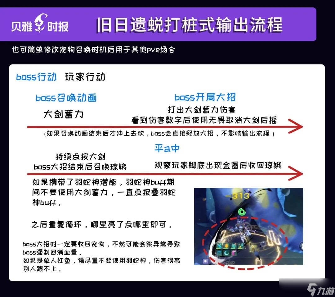 实战中旧日遗蜕会先释放一次大招,然后开始3A1大的技能循环。