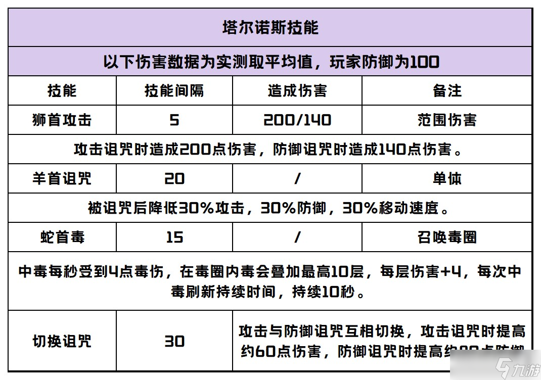 实战中塔尔诺斯会先切换至攻击诅咒(切换诅咒),然后使用蛇首毒和羊首诅咒,之后进入15秒一次蛇首毒,20秒一次羊首诅咒的循环。