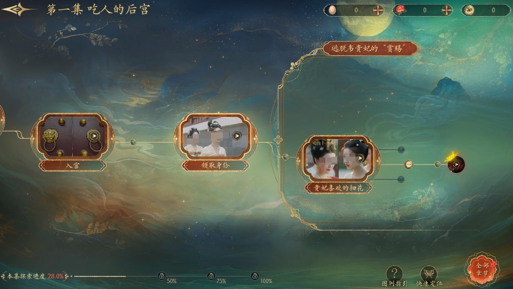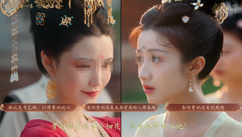游戏里玩家刚刚进入到皇宫,就会遇到一个名叫韦贵妃的角色,就在玩家的队伍前会有一只钿花,韦贵妃在这个时候会拿起钿花,接着会询问玩家所在的宫女队伍,是谁留下的钿花,这时候玩家就会进入到游戏里的第一次抉择,这个抉择里会给出三个选项,玩家可以承认这个簪子是自己的,为的是拉近关系能获得贵妃的欢心,也可以直接告诉贵妃,这是前面队伍落下的好,另外还有一个选项就是告诉贵妃,这是自己好友的,玩家秀在这三个选项里做出选择,不同的选择也会影响后续的游戏走向。