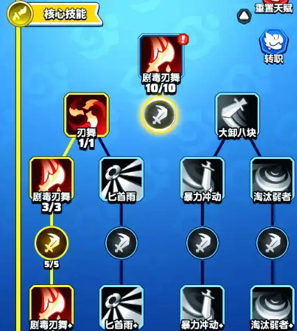 解锁技能后,接下来的重点就是提升核心技能与基础技能。作为刺客,核心技能如“刃舞”和“大卸八块”是你输出的主要手段。根据自己的需求,你可以选择首先加强“刃舞”这一群体攻击技能,毕竟在面对大量敌人时,这个技能的表现是最亮眼的。如果你的任务偏向于击杀单一强敌,那么可以选择强化“大卸八块”来提升单体爆发。在刷副本或者清图时,“刃舞”的效率无人能敌,而在打BOSS时,一套“大卸八块”打出的伤害会让人非常满意,这种技能之间的配合正是刺客职业的魅力所在。