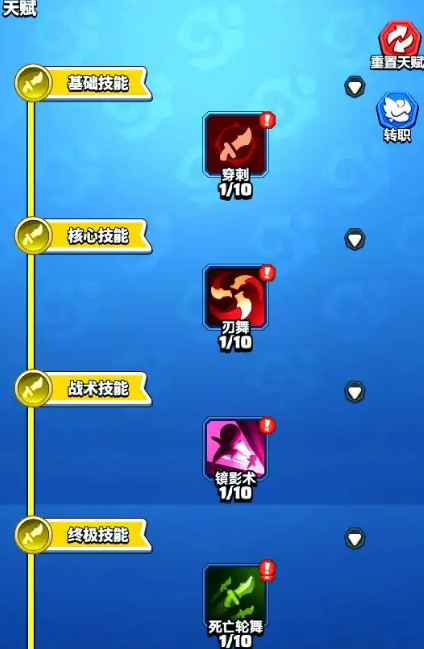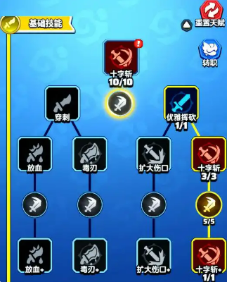 在强化这些核心技能的同时,基础技能也不容忽视。基础技能虽然是最初的普通攻击,但随着技能的提升,它会逐渐成为你在战斗中的关键输出工具。尤其是在游戏初期,提升基础技能能显著提高你的怪物清除效率,帮助你快速积累经验。别看这些技能前期伤害平平,一旦加点到位,配合其他天赋和装备效果,它的综合输出能让人眼前一亮。基础技能的成长性在刺客体系中是被低估的一环,但对于持续战斗而言,这种稳定输出尤为重要。