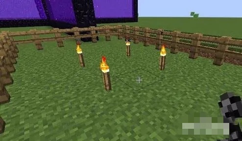 我们来简单做一个测试,当然这也是这段代码的用法。小编我首先召唤几只苦力怕,来当做这个爆破工具。多整几只,插上防爆能力极低的火把。然后,我们就可以来感受一下了。