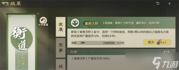 衡道的核心优势主要体现在政令系统方面,政令不仅可以使玩家在发育过程中更快地积累资源,而且可以加强团队的续航能力。对处在发育阶段的玩家来说非常关键,可以给后面的中后期战斗打下坚实的基础。政令把资源送给盟友,给盟友提供足够的支援。衡道玩家的战略眼光得到了很好的发挥,而且整个团队在长时间的战斗中也一直拥有强大的后勤保障。政令可以给队友增加战斗增益,在战斗中没有直接参与的衡道玩家也可以通过提供增益来为队友打气,分得战功。