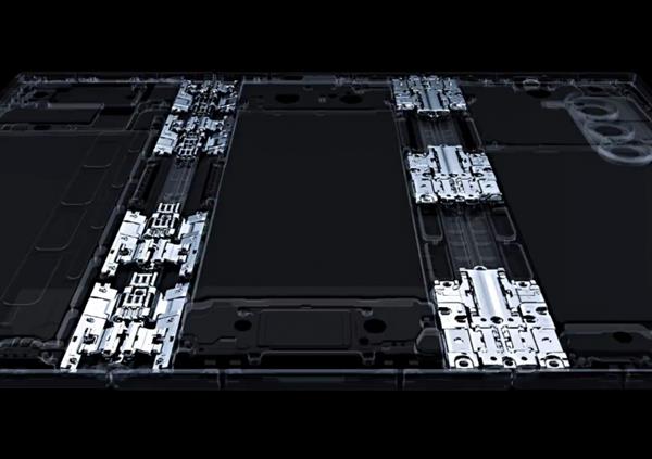 实现可靠的三折叠结构是极具挑战性的工程任务。三星通过“双铰链+内折大屏”的创新布局,成功攻克了这一难题。Galaxy Z TriFold采用了两种不同尺寸的超薄精工装甲铰链,以双轨结构协同运作,两边屏幕可以向内折叠闭合。这一创新设计使设备即使在每片屏幕的重量与组件各不相同的情况下,也能保持折叠操作的流畅与稳定。铰链结构还能使屏幕面板彼此贴合、近乎零间隙,实现了设备既纤薄又便携的特性。为了提升耐用性,三星还采用了多重坚固材质:钛金属铰链盖保护内部可折叠结构并抵抗长期磨损;高强度增强型装甲铝边框在不增加机身厚度的前提下提升结构刚性;陶瓷玻纤背板则在保持纤薄的同时具备抗裂性能。经过严格测试,这套铰链系统可承受20万次折叠,并具备IP48级防护能力,让纤薄与可靠并存。