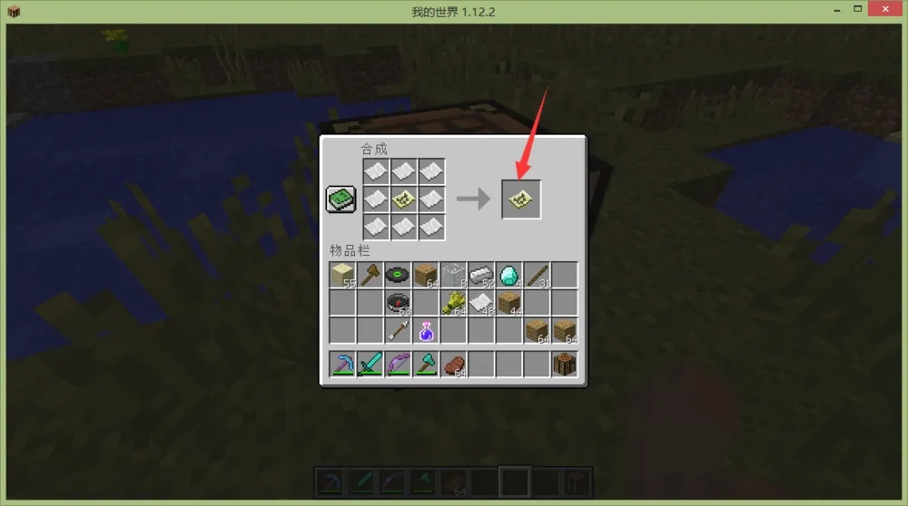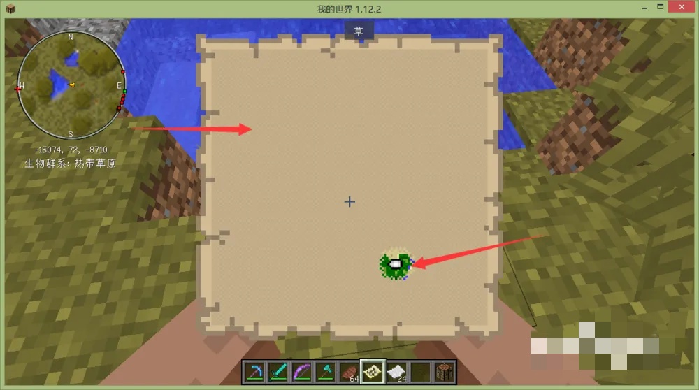 我们再将这个地图和纸合成大地图,这样就可以显示更大范围的地形地貌了;一共可以扩大5次,达到最大地图上限。